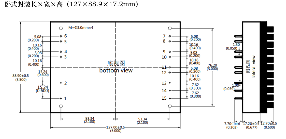 安裝尺寸(單位:mm)及管腳定義: