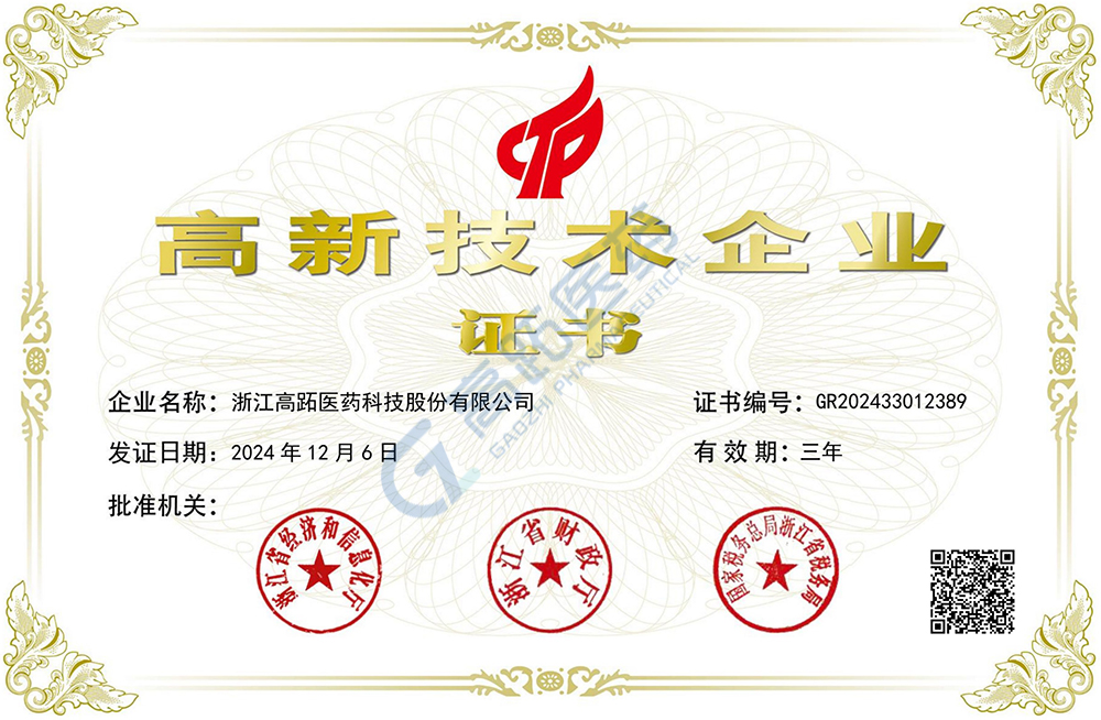 榮耀之路、實力勛章。這些榮譽是高跖醫藥發展歷程中的一座座豐碑,它們見證了我們的拼搏與奮斗、成長與蛻變。但我們深知,榮譽只代表過去,未來的道路依然任重道遠。我們將倍加珍惜這份來之不易的榮耀,不斷提升自身實力,以更加優質的產品和服務回饋廣社會的信任與支持,向著更高的目標奮勇前進,書寫更加輝煌燦爛的篇章!