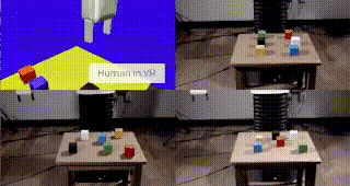 在實驗室進行的案例中,OpenAI嘗試教會機器人手臂如何堆疊一系列有顏色的正方體。首先人類需要佩戴VR眼鏡在虛擬現實環境中手動執行一次任務,將各色正方體堆疊在一起,OpenAI利用視覺網絡(一種被被萬張模擬圖片訓練的神經網絡)來觀察這些動作,再將這些動作轉換成為數據輸入到機械臂中進行相應的操作。