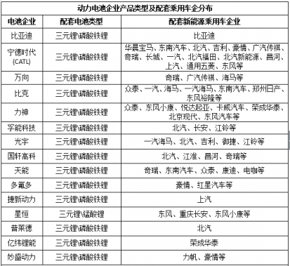 寧德時代合作車企多達15家以上,包括北汽、華晨寶馬、吉利、上汽、奇瑞、東風、長城等主流車企。力神合作車企達7余家,包括眾泰、一汽、北京現代、東風等主流車企。比克合作車企達7家以上,包括眾泰、一汽、海馬、鄭州日產等。萬向給奇瑞、廣汽傳祺、海馬等車企提供動力電池。
