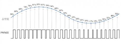脈沖寬度調(diào)制(PWM)是一種對模擬信號進行數(shù)字編碼的方法。通過高分辨率計數(shù)器的使用,方波的占空比被調(diào)制用來對一個具體模擬信號進行編碼。PWM信號仍然是數(shù)字的,因為在給定的任何時刻,滿幅值的直流供電要么完全有(ON),要么完全無(OFF)。電壓或電流是以一種通(ON)或斷(OFF)的重復脈沖序列被加到模擬負載上去。通的時候即是直流供電被加到負載上的時候,斷的時候即是供電被斷開的時候。只要帶寬足夠,任何模擬值都可以使用PWM進行編碼。而占空比就是高電平持續(xù)時間與整個周期時間的比值,占空比越大,高電平持續(xù)的時間越長,模擬電路開通的時間就越長,如圖1所示。