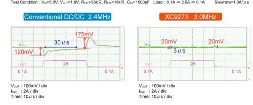 ▲図1 與過去的產(chǎn)品的高速瞬態(tài)響應(yīng)比較