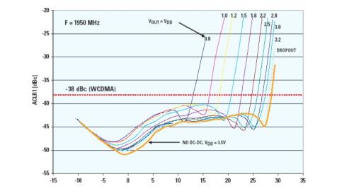 圖5:功率放大器的供電電壓和POUT怎樣影響ACLR