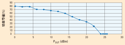 圖4:當功率放大器由電源穩壓器供電時,功率節省的百分比