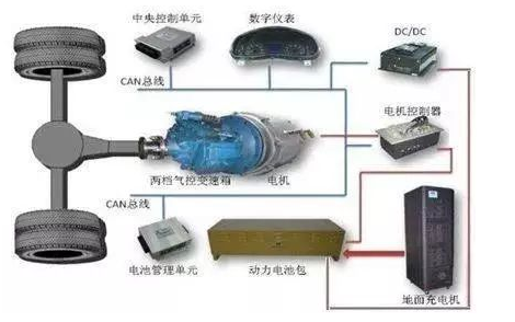 給車載電氣供電,DCDC在電動汽車電氣系統中的位置,如下圖所示。它的電能來自于動力電池包,去處是給車載用電器供電。