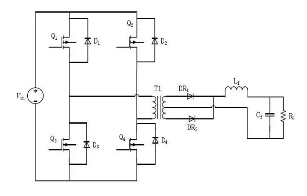 又叫做功率模塊,是整個DCDC的主體。一個典型的全橋型 DCDC 變換器主電路拓撲如下圖所示。