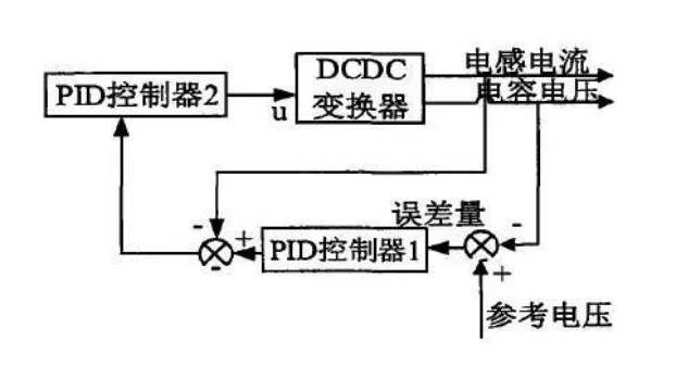 電感電流和電容電壓因此需要對兩個變量都要進行PID整定,一個典型的控制流程如下圖所示??刂颇K是由兩個PID控制器組成,分別是電壓控制控制外環和電流控制內環,在流程圖中給出一個參考電壓,設計合理的參數,就可以很快速的達到控制系統的目的。