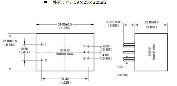 電源尺寸:39*25*22mm